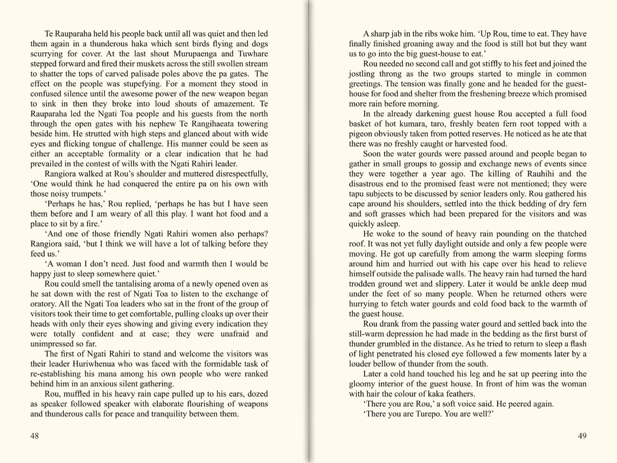 Fantastic reading I was raised from a baby at Maketu Kawhia behind Ahurei my partner was Scottish brought up with Maori in Porirua (Ngati Toa) so for sometime I’ve been wanting to know about Te Rauparaha and Ngati Toa therefore I am very thankful that your father wrote these books I’ve brought books 1 and 2 can’t wait for the third book but also I would like the new addition of book 1 Tides of Kawhia please once again fantastic reading plus just knowing how we Maori lived back then wow ever so grateful.